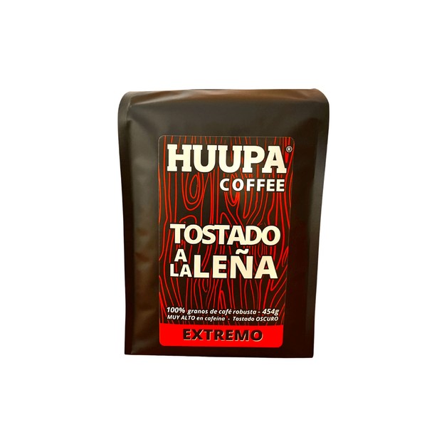 Café Tostado a la Leña, 100% Grano Robusta, Tueste Oscuro, Grano Entero, EXTREMO 454 Gr