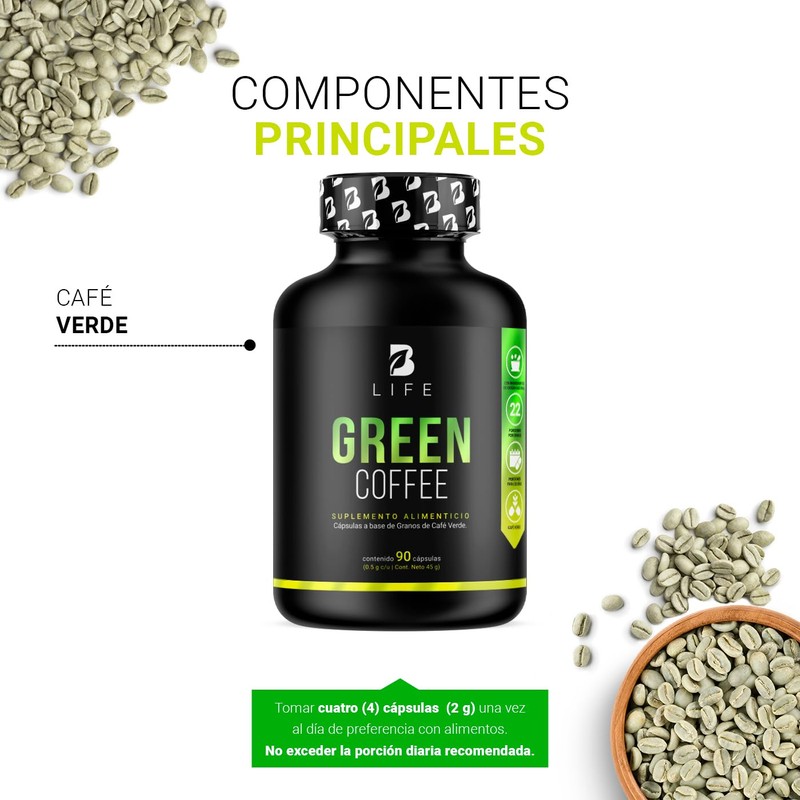 - ¡Disfruta la formulación de Green Coffee B Life! Diseñada a base de Café Verde Puro. Componente aliado de tu metabolismo. Contiene 90 cápsulas.