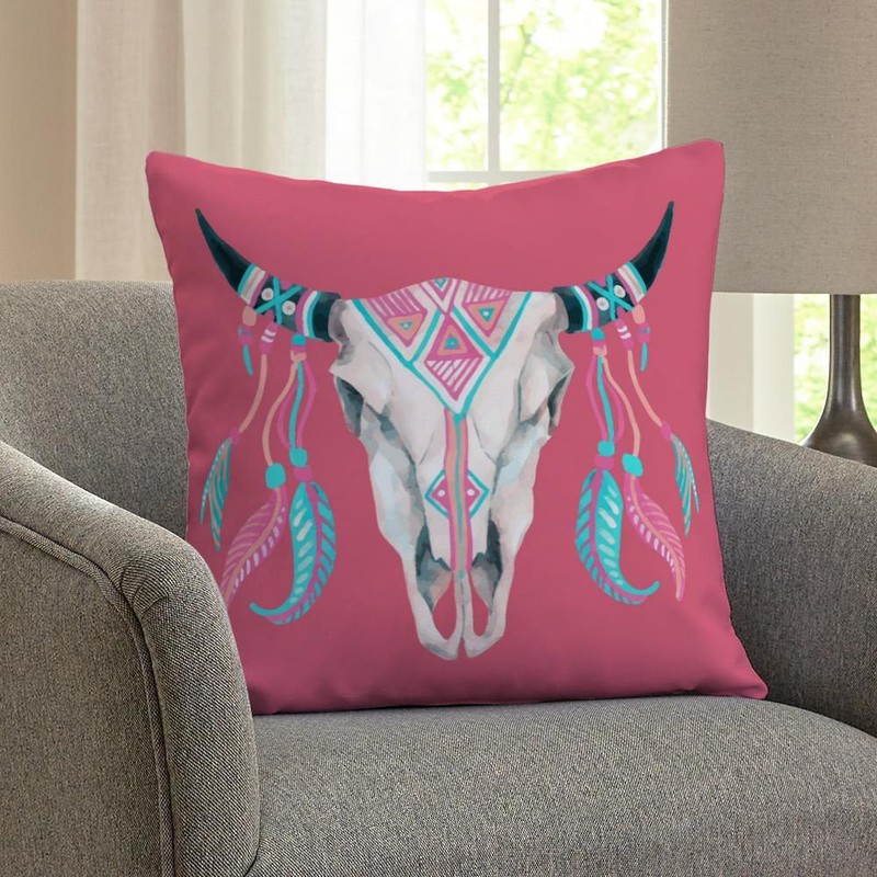 CafePress Buffalo Skull Everyday Pillow Square Pillow, Decorative Accent Pillow Woven