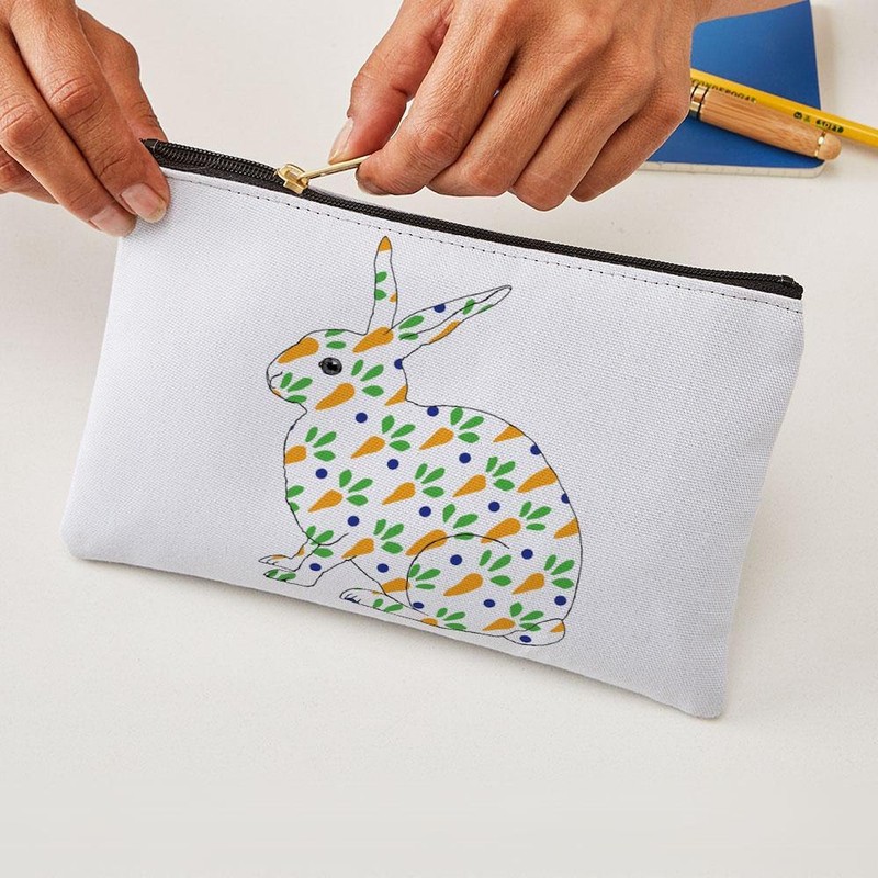 CafePress Carrot Calico Rabbit Zipper Makeup Pouch, 8.5"x6"