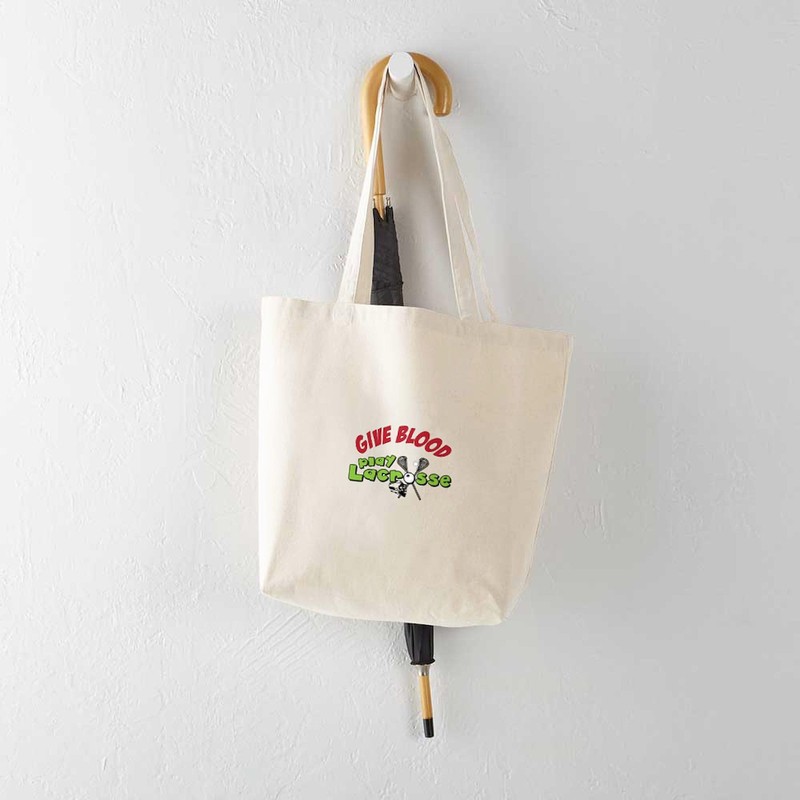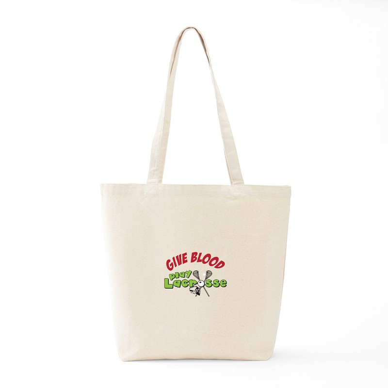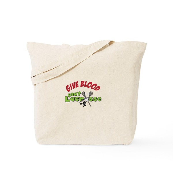 CafePress GIVE BLOOD Play Lacrosse Tote Bag Reusable Natural Beige Canvas Shopping Bag