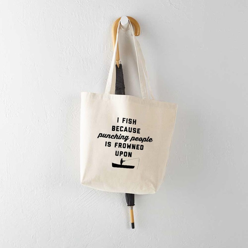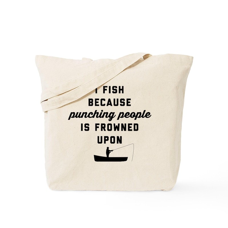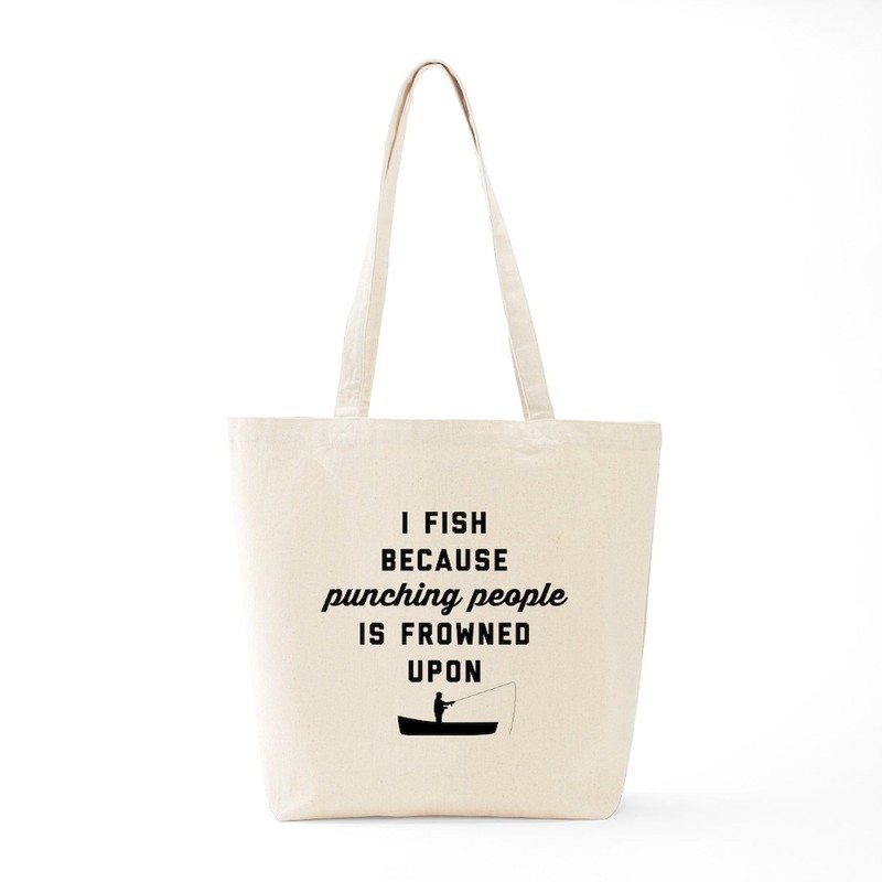 CafePress I Fish Because Punching People Is Frowned Tote Bag Reusable Natural Beige Canvas Shopping Bag