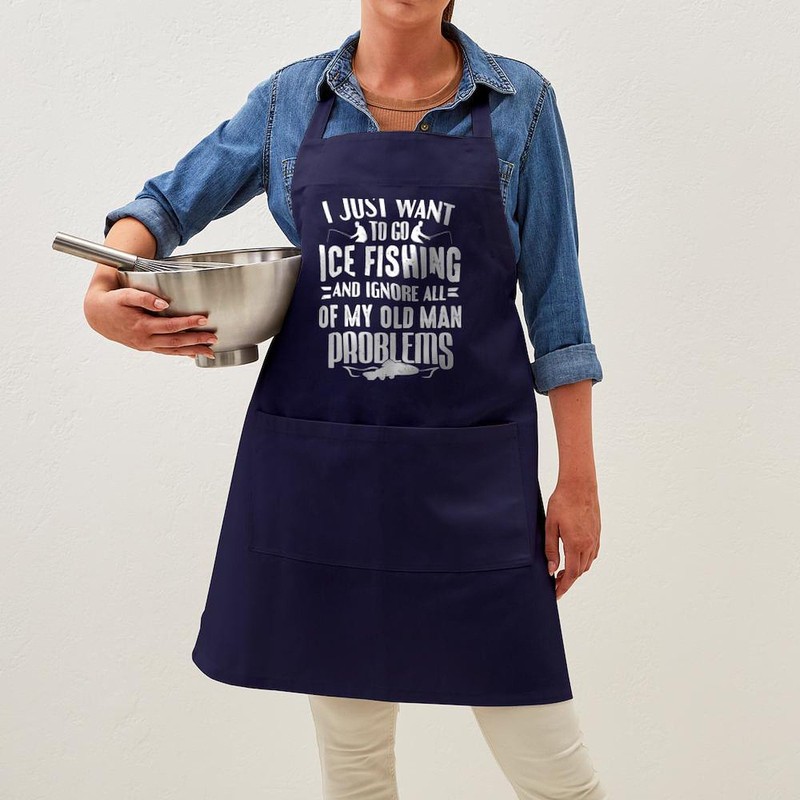 CafePress Ice Fisher Ignore Old Man Problems Ice Fishing Kitchen Apron with Pockets, Grilling Apron, Baking Apron