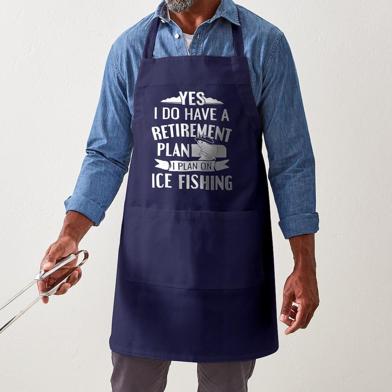 CafePress Ice Fisher Retirement Plan On Ice Fishing Kitchen Apron with Pockets, Grilling Apron, Baking Apron