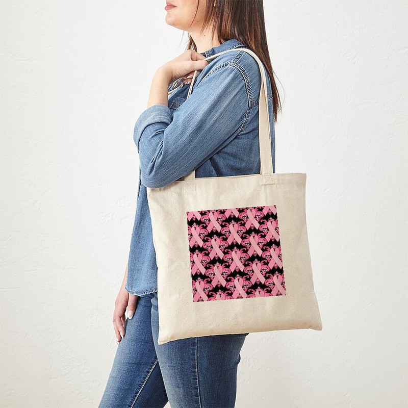CafePress Pinkribbonlllpbsq Tote Bag Natural Canvas Tote Bag, Reusable Shopping Bag