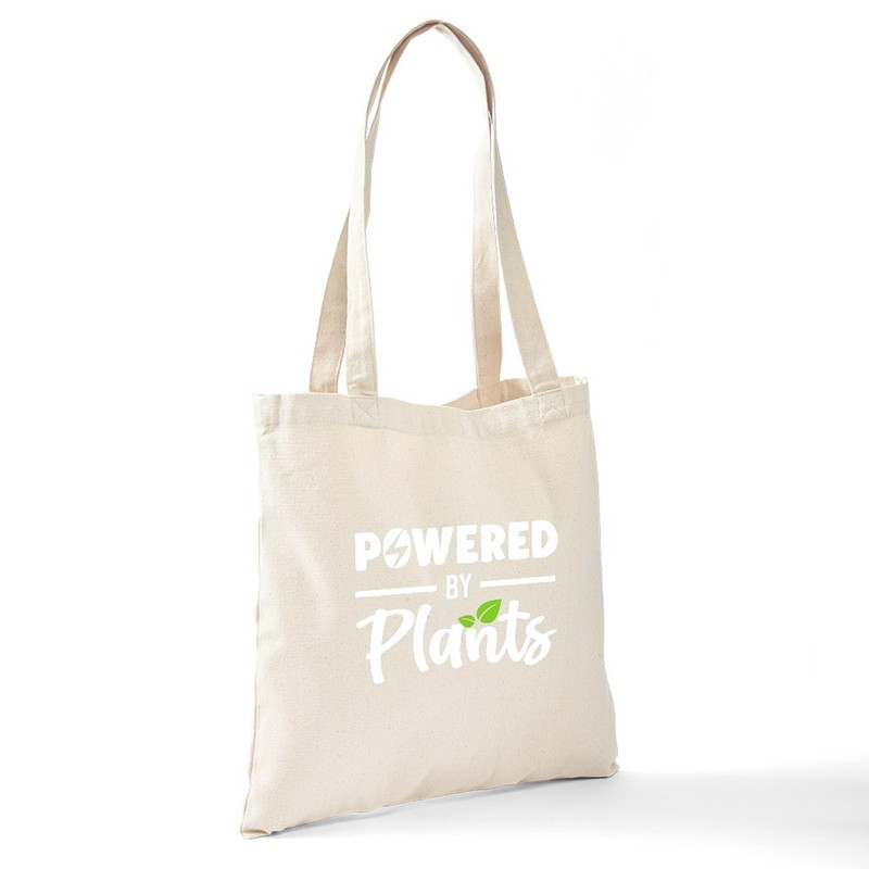 CafePress Powerd By Plants Vegan Vegetarian Reusable Natural Beige Canvas Shopping Bag