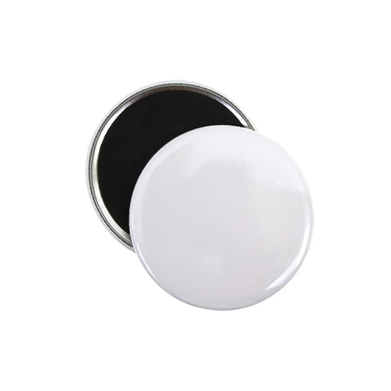 - Round refrigerator magnets printed on metal shell with flat, magnetic backing