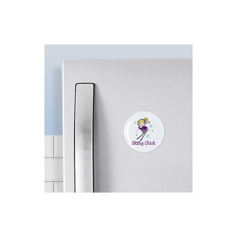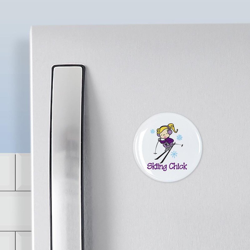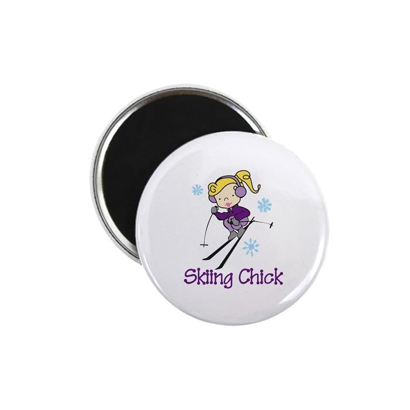 CafePress Skiing Chick Magnets 2.25" Round Magnet, Refrigerator Magnet