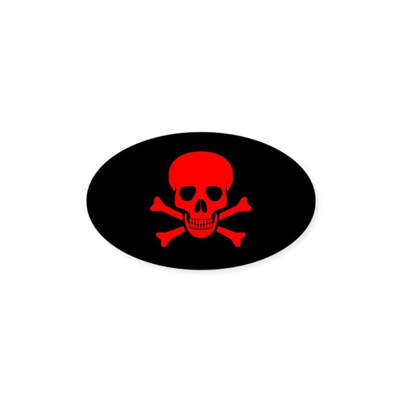 CafePress Skull & Crossbones (Red) Oval Car Bumper Sticker