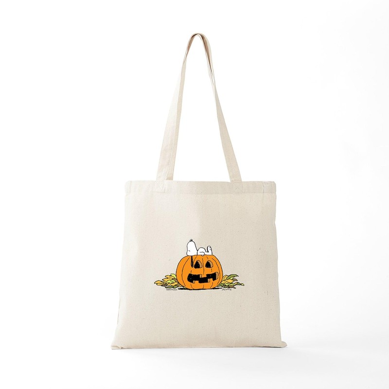 CafePress Snoopy Jack O Lantern Reusable Natural Beige Canvas Shopping Bag