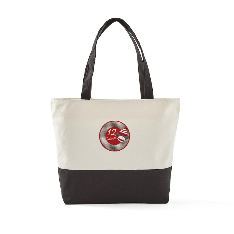 CafePress Sock Monkey 12 Months Milestone Canvas Tote Top Zipper Closure
