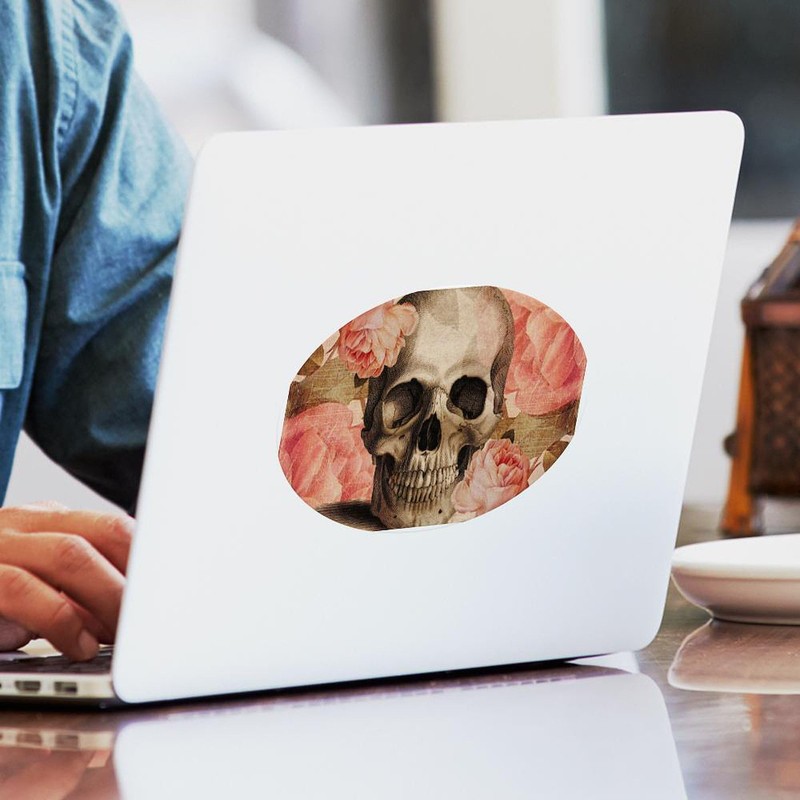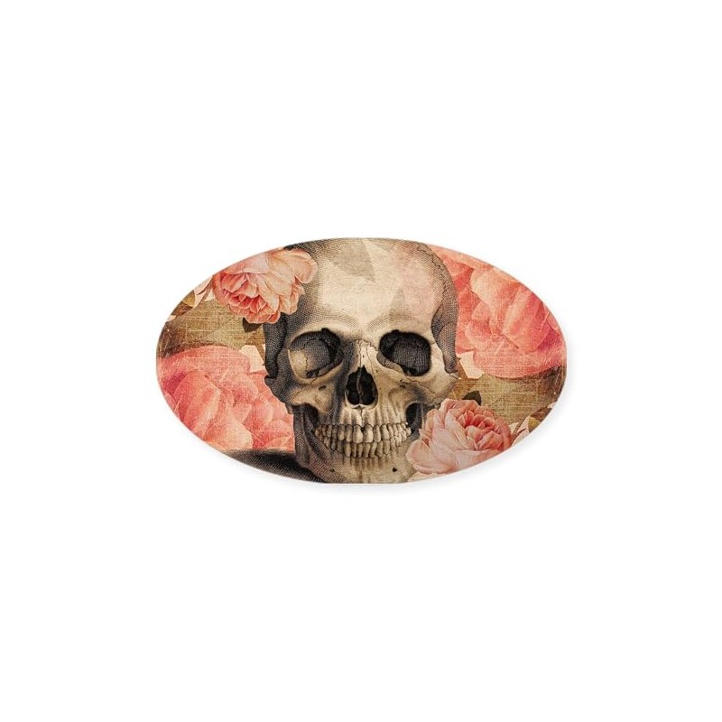 CafePress Vintage Rosa Skull Collage Sticker Oval Car Bumper Sticker