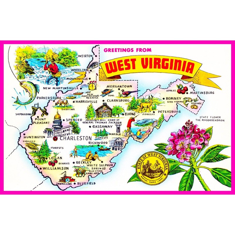 CafePress West Virginia Map Greetings Postcards (Package Of Postcards (Package of 8), 6"x4" Printed Note Card