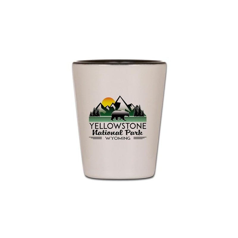 CafePress YELLOWSTONE NATIONAL PARK WYOMING MOUNTAINS EXPLOR Unique and Funny Shot Glass