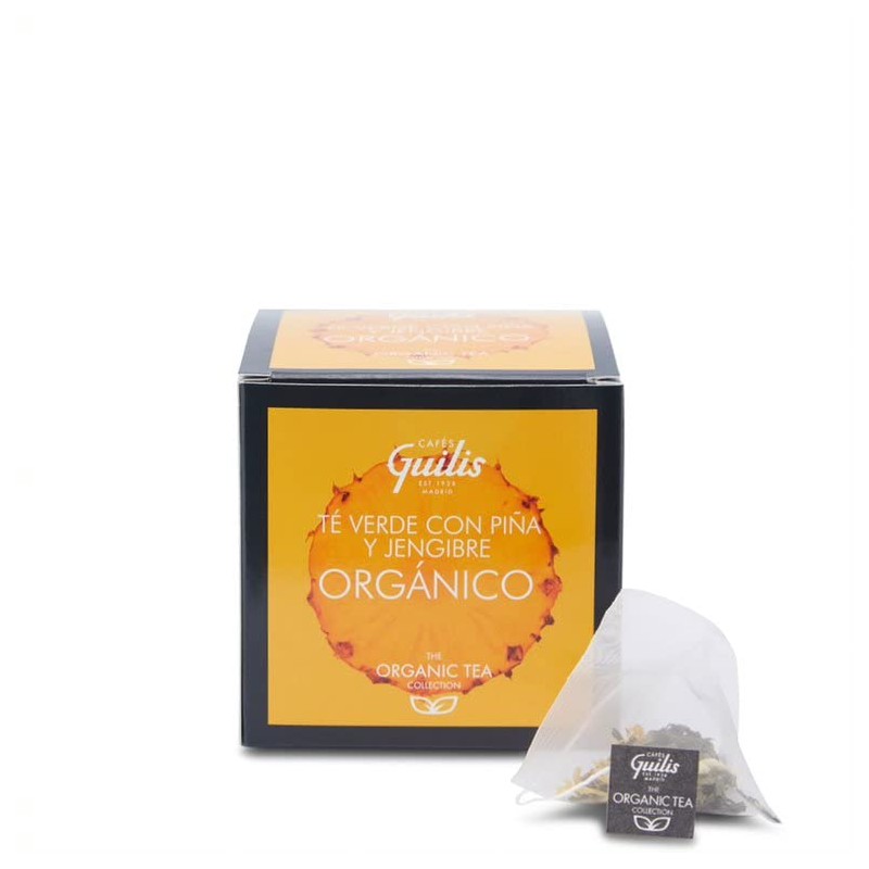CAFES GUILIS DESDE 1928 AMANTES DEL CAFE Organic Green Tea with Pineapple and Ginger in Leaf Box 15 Pyramids - Pack of 4