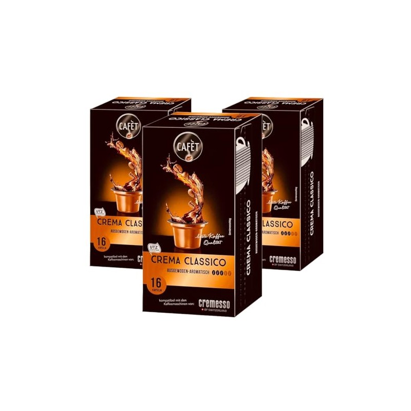 Cafet for Cremesso, Coffee Capsules Crema Classico 48 Pieces (3 x 16 Items)