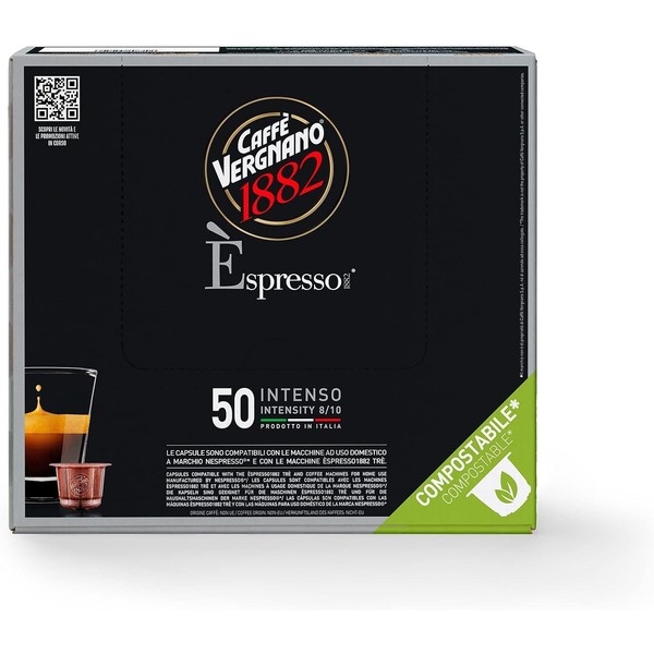 Caffè Vergnano 1882 - Èspresso Compostable Coffee Capsules, Compatible with Nespresso, Intenso (Intensive) - Pack Contains 50 Capsules