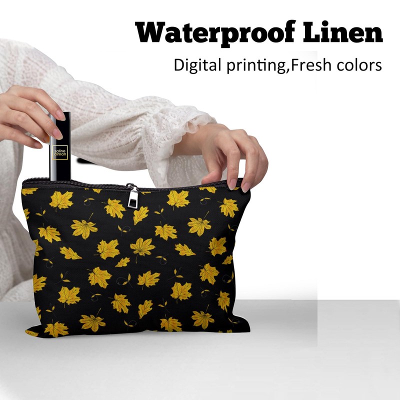 - ★Material de alta calidad: la bolsa de maquillaje de hojas de arce está hecha de material de lino, es fuerte y duradera de usar.