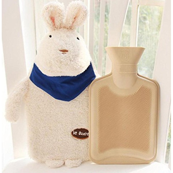 - Incluye 1 botella de agua caliente (blanca) + 1 funda de conejo de felpa (blanca)