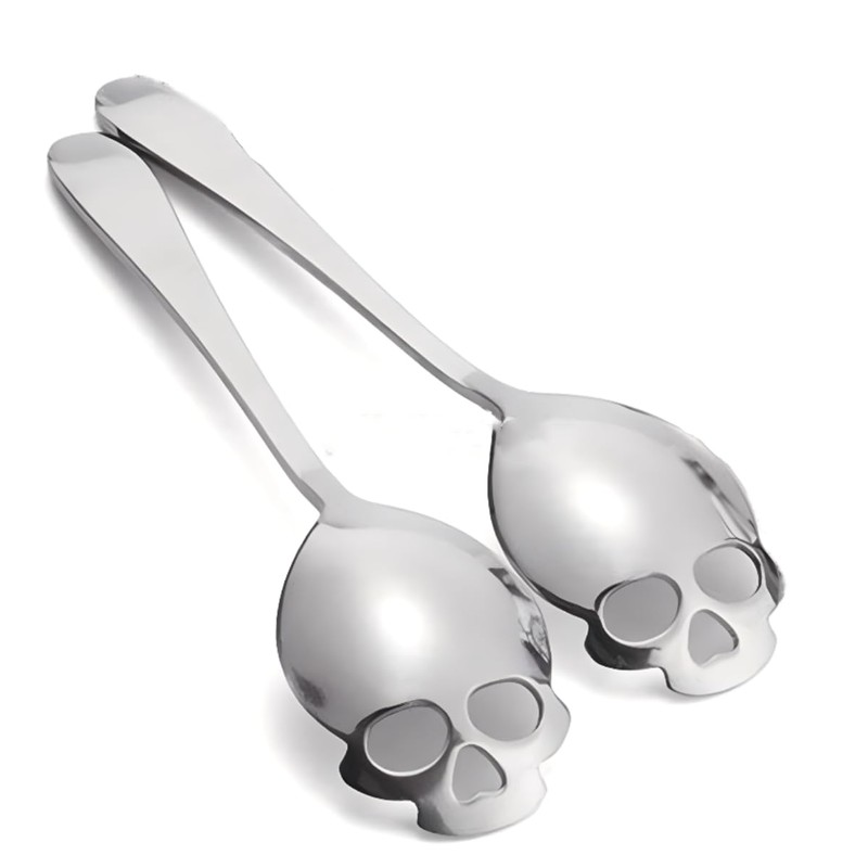 Cafurty 2 PCS Stainless Steel Spoons Skull Sugar Spoon Tea and Coffee Stirring Spoon - Silver