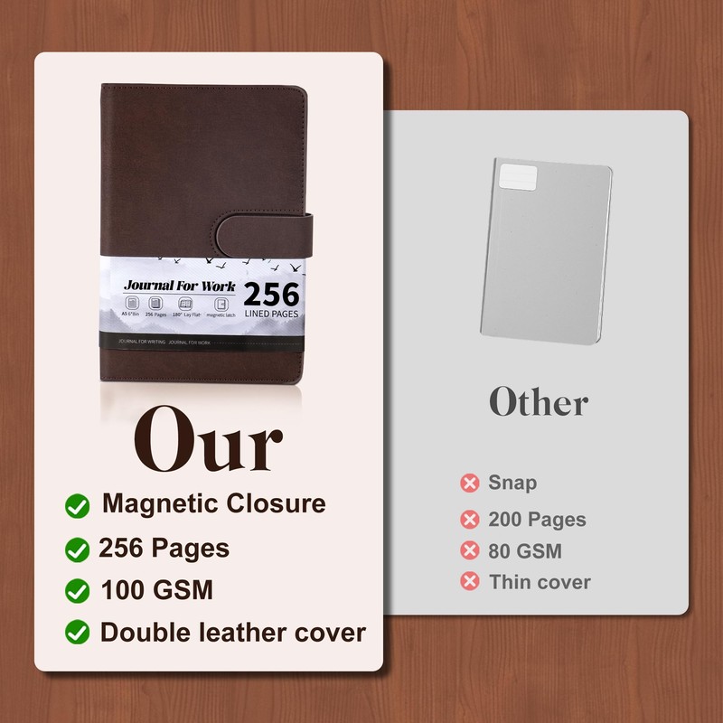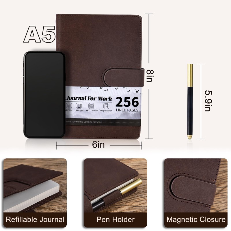 - Crafted for Seamless Workdays: With 256 pages of premium-quality paper, this journal notebook lies fully flat (180°) for effortless writing. The magnetic clasp keeps notes secure on the move, easily fitting into any briefcase or tote