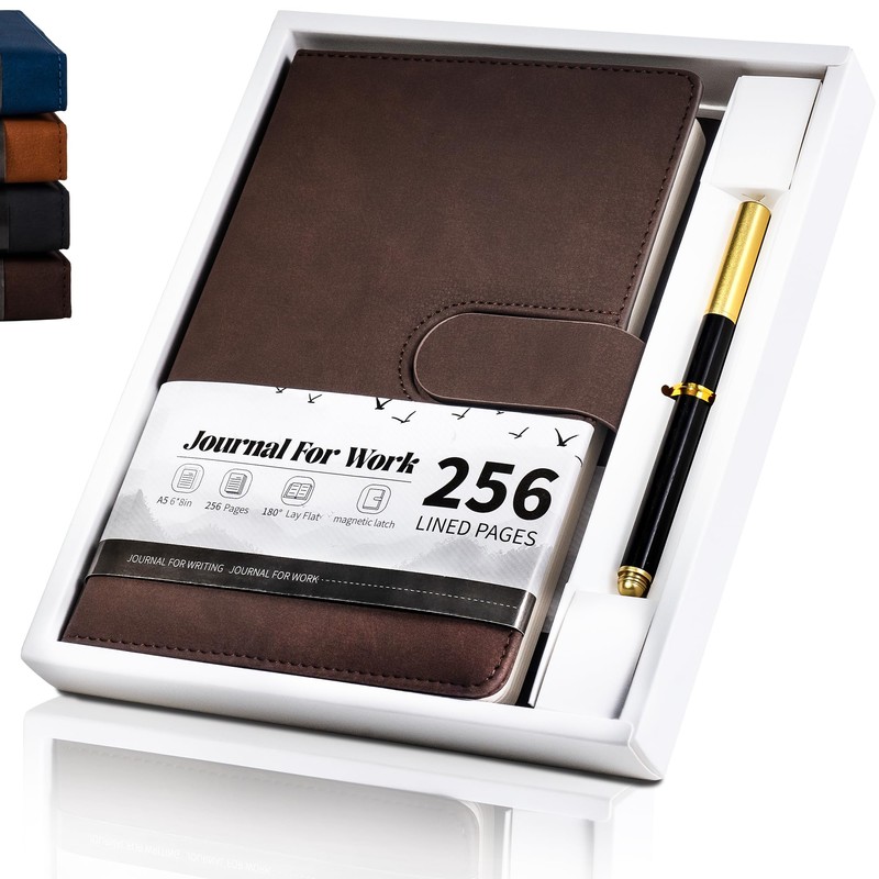 - The Complete Professional Set, Ready to Impress: Presented in a smart gift box, this A5 leather notebook and matching pen make a respectable gift for colleagues or a polished addition to your desk—no extra wrapping required