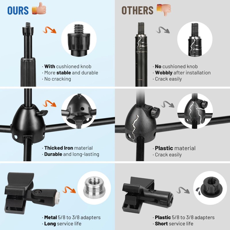 Portable and Easy to Assemble: Our microphone stand is convenient for you to use the microphone stand when going out. The installation manual is attached to the package. You can install and use it quickly within few minutes.