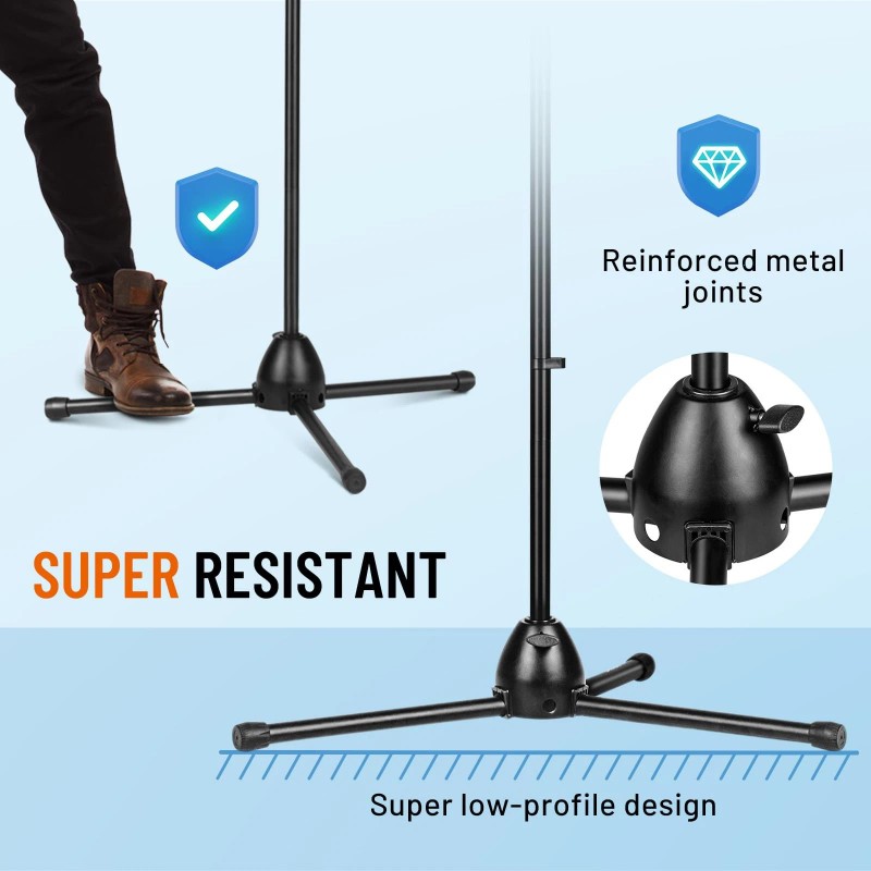 Cahaya Heavy-Duty Tripod Microphone Stand Adjustable Boom with 2 Mic Clips CY0330