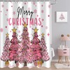 Caheansi Merry Christmas Shower Curtain, Pink Buffalo Check Plaid Xmas Tree Winter New Year Holiday Bathroom Curtain Waterproof Fabric Machine Washable with Hooks, 72" Wx72 L