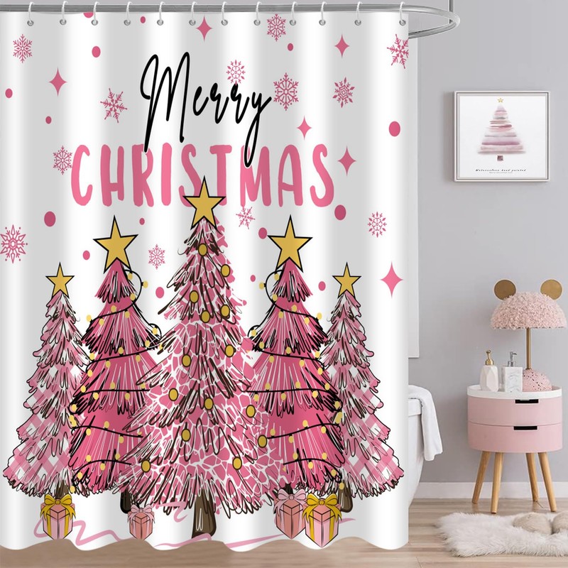 Machine washable. Do not bleach or dry clean. The Xmas shower curtain is long-lasting and durable for many washes.