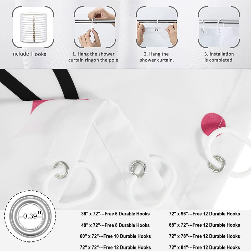 - 【INSTALL & DISASSEMBLE QUICKLY】Featuring reinforced top, rust-proof metal grommets on top, to prevent holes from ripping or tearing, and come with plastic hooks. It can be hung on the pole quickly by using curtain rings. It can be installed and removed easily. What’s more, multi sizes shower curtains are available, 72"x72" is the standard size.