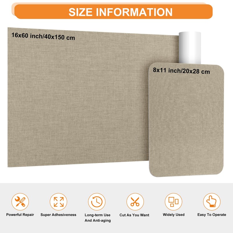 - 【 Linen Fabric Repair Patch】Are you still worried about the pets damage to your sofa couch?Our coarse fabric patches can help you solve this problem.Within the smallest budget,your sofa is refreshing.Size:3 pcs 8x11 inch fabric repair kit