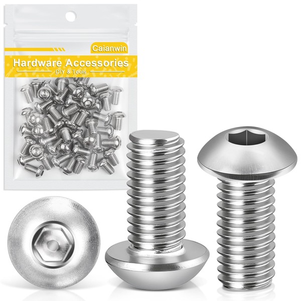 Caianwin M6 x 10mm Hex Socket Button Head Screws Fully Threaded 304 Stainless Steel Bolts