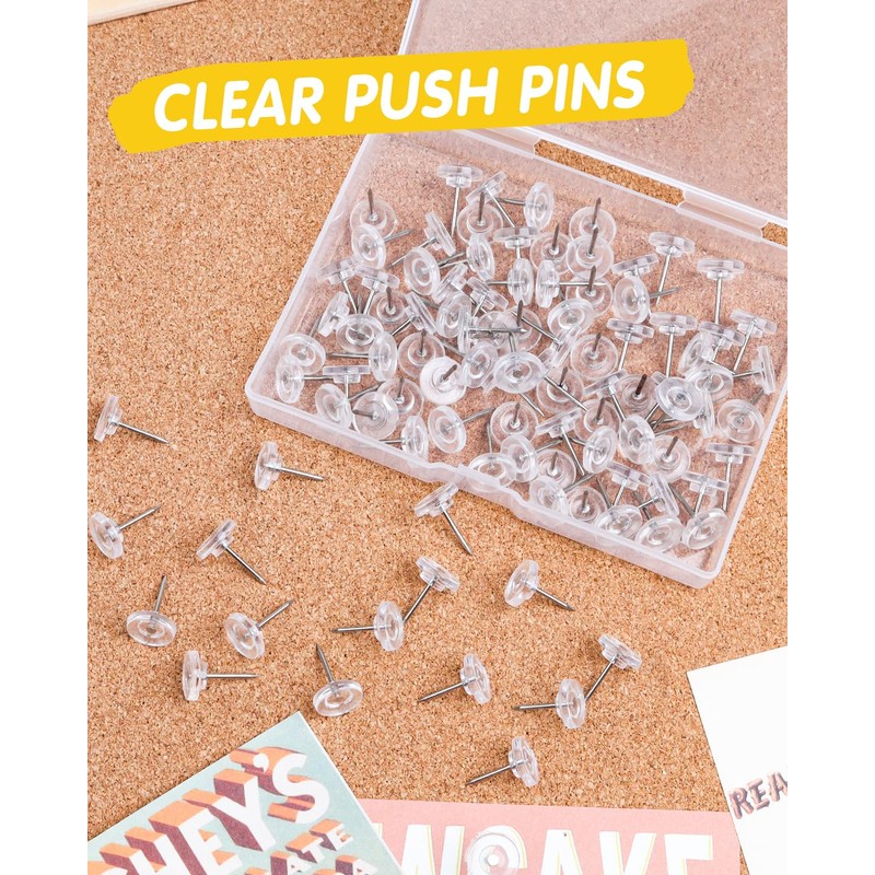 - Box contents: you will receive 80 transparent push pins and a transparent plastic box.