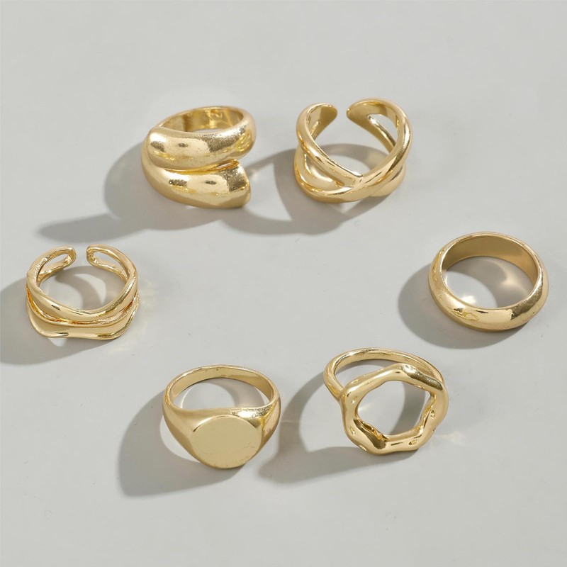 Caiguoer 6Pcs Gold Geometric Rings Joint Ring Set Stacked Open Ring Jewelry for Women and Girls