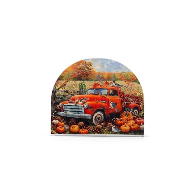 Caikeny Napkin Holder for Tables Pumkin Bird Trucks Maple Forest Acrylic Napkins Holder Freestanding Tissue Dispenser Box for Kitchen Dining Table Coffee Desk Decor 1 Pcs