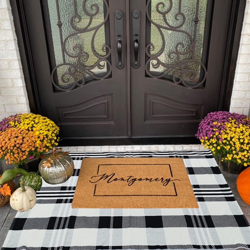 - 【CUSTOMIZED SIZE for HELLO DOORMAT】: 27.5 x 43 Inches for freshening up your porch decor by layering this black and white plaid outdoor rug with a hello doormat or welcome mat; Your front door will be Instagram ready!