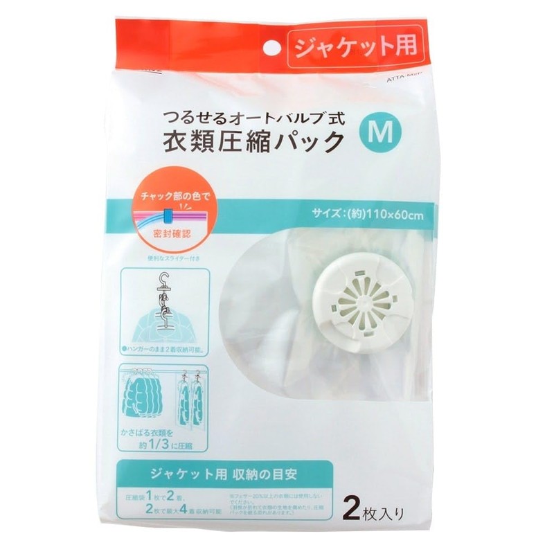 Cainz Hanging Auto Lock Valve Type Clothing Compression Bag, M, 2 Pieces, Compression Bag, Width 43.3 inches (110 cm), Depth 23.6 inches (60 cm), Space Saving, Clothes Change