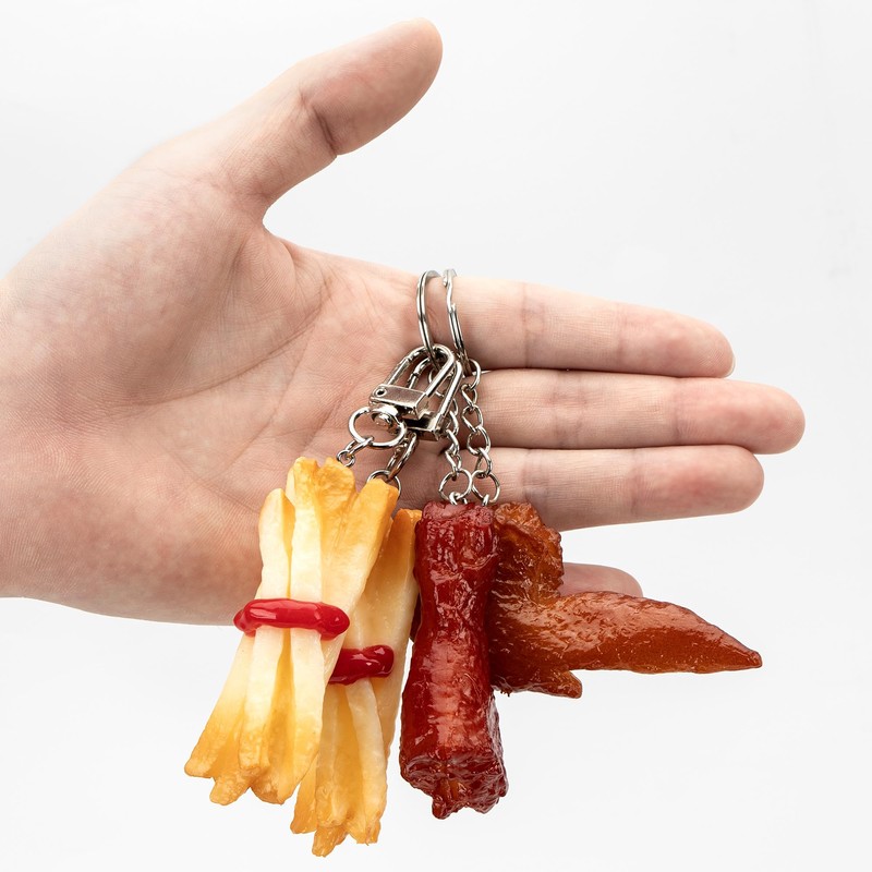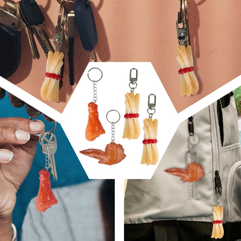 - Package includes: 1 x grilled chicken wing keychain, 1 x realistic chicken leg keychain, 2 x fries key rings