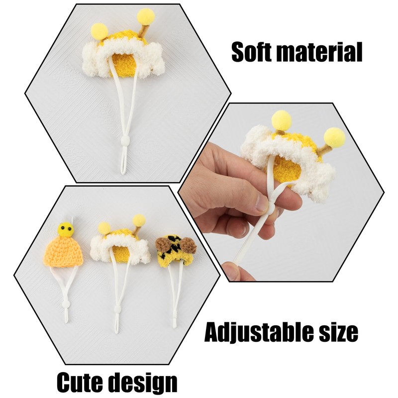 Cute hand-knitted hat with adjustable strap for hamsters, snakes, frogs hedgehogs, guinea pigs, rats, ferrets, squirrels, parrots, pigeons, lizards, reptiles, small pets apparel & accessories bee hats.