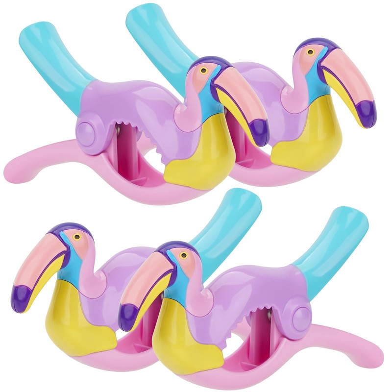4 Pack Beach Towel Clips for Beach Chairs, Pool and Patio Accessories Clothes Pins for Bags (Toucan)