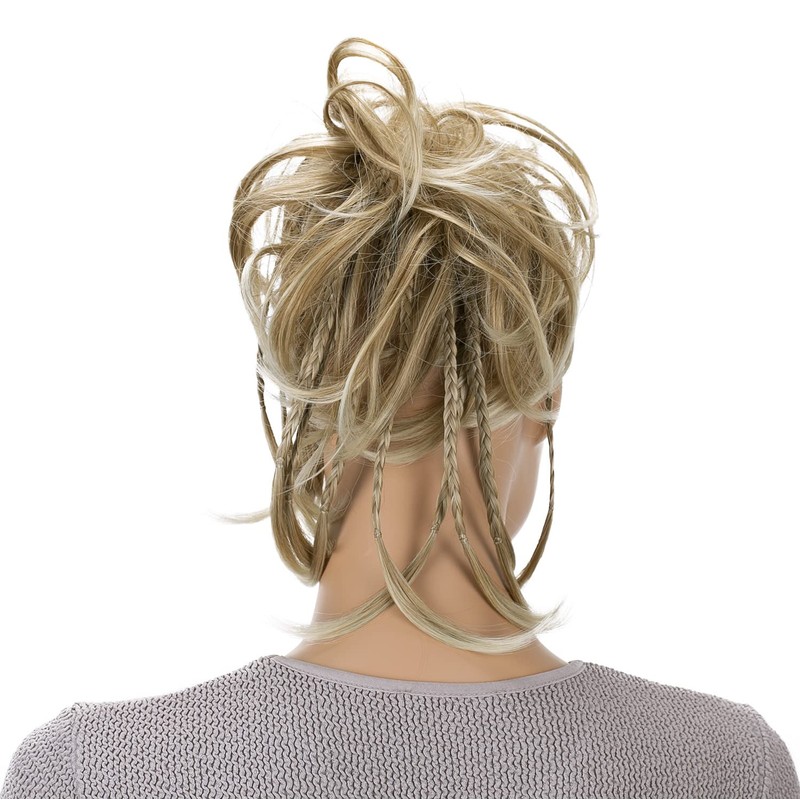 CAISHA by PRETTYSHOP XXL Large Scrunchy Braided Updo Slightly Wavy Messy Bun Hairpiece Blond Mix G13D