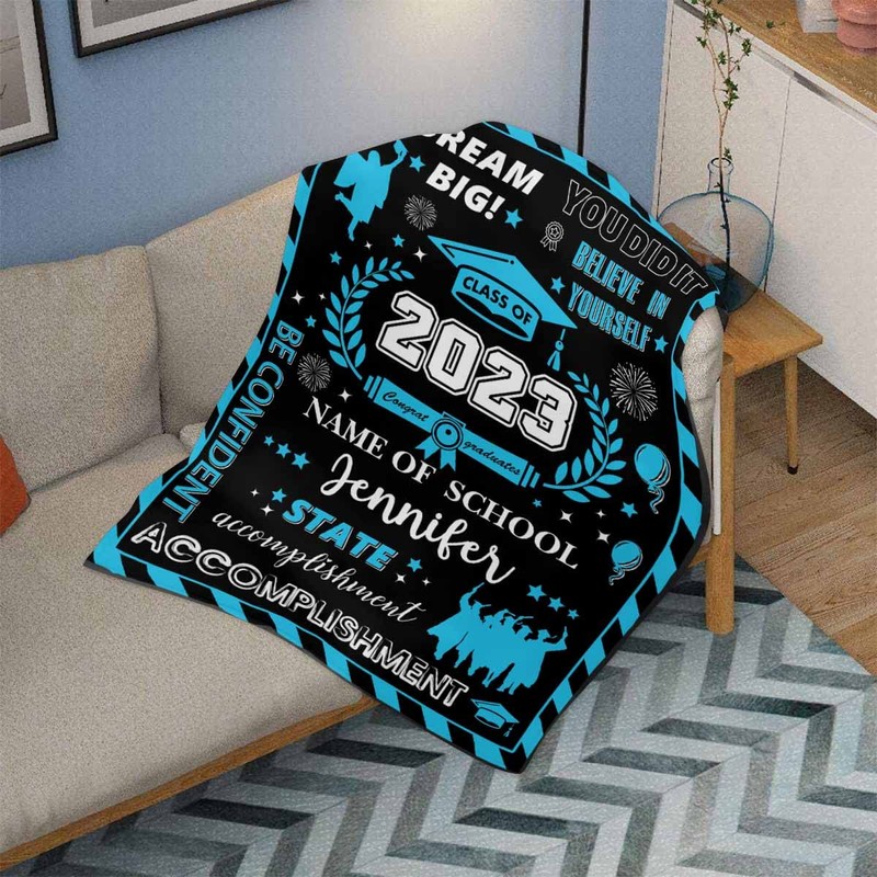 Caisuedawn Custom Graduation Blankets High School Graduation Gifts for Her Him, Customized 2023 Graduation Blankets with Name for Living Room Bedding Sofa Use 60"x80"
