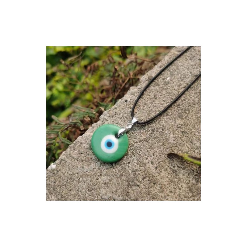 Caiyao Evil Eye Pendant Necklace Glass Leather Rope Chain Turkish Protect Lucky Necklace for Women Men-Green