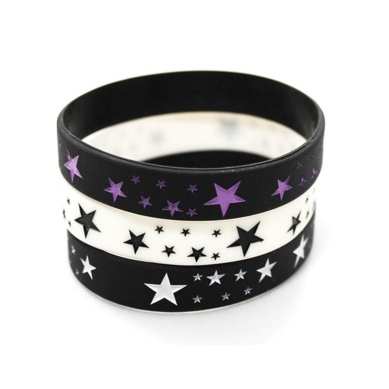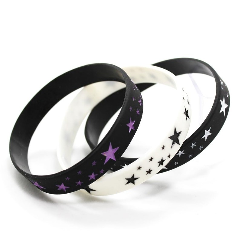 - package includes:3 pieces the stars silicone braceles in purple,black and white colors.