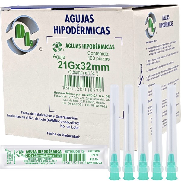 Caja 100 Agujas Hipodérmica Desechable Calibre 21G x 32 mm