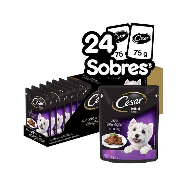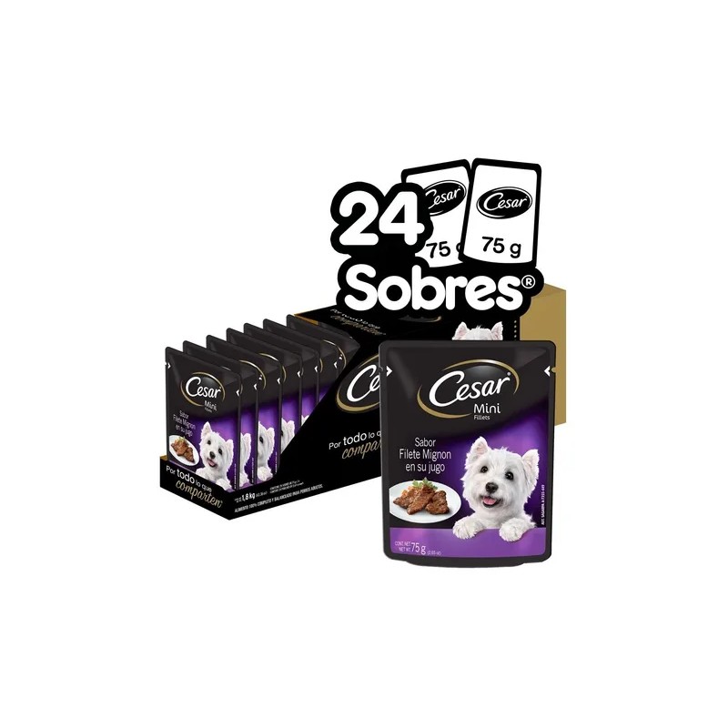 Caja Alimento Húmedo Cesar Perros Filete Mignon X24 Sobres