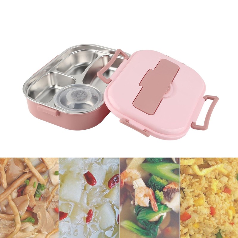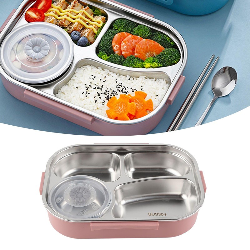 Caja Bento, Fiambrera de Acero Inoxidable 304, Caja Bento con Compartimentos, Caja Bento Portátil de 4 Rejillas, Recipiente de Almacenamiento de Alimentos para Estudiantes Y Adultos(Rosa)