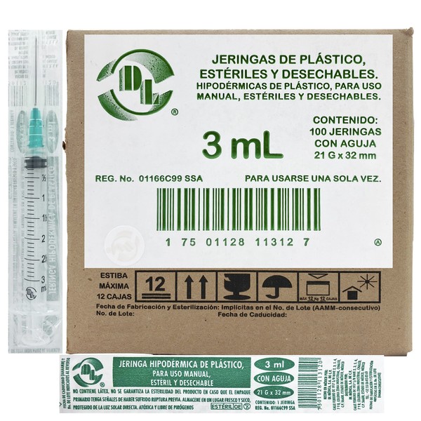 Caja De 100 Jeringas 3 mL Con Aguja 21 G X 32 mm