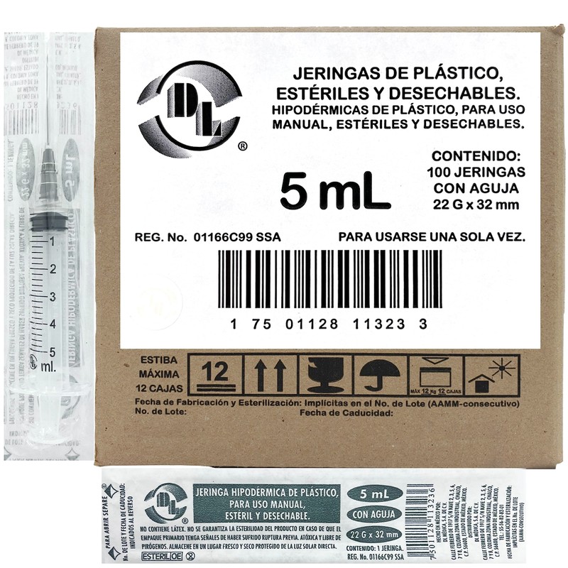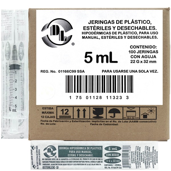 Caja De 100 Jeringas 5 mL Con Aguja 22 G X 32 mm